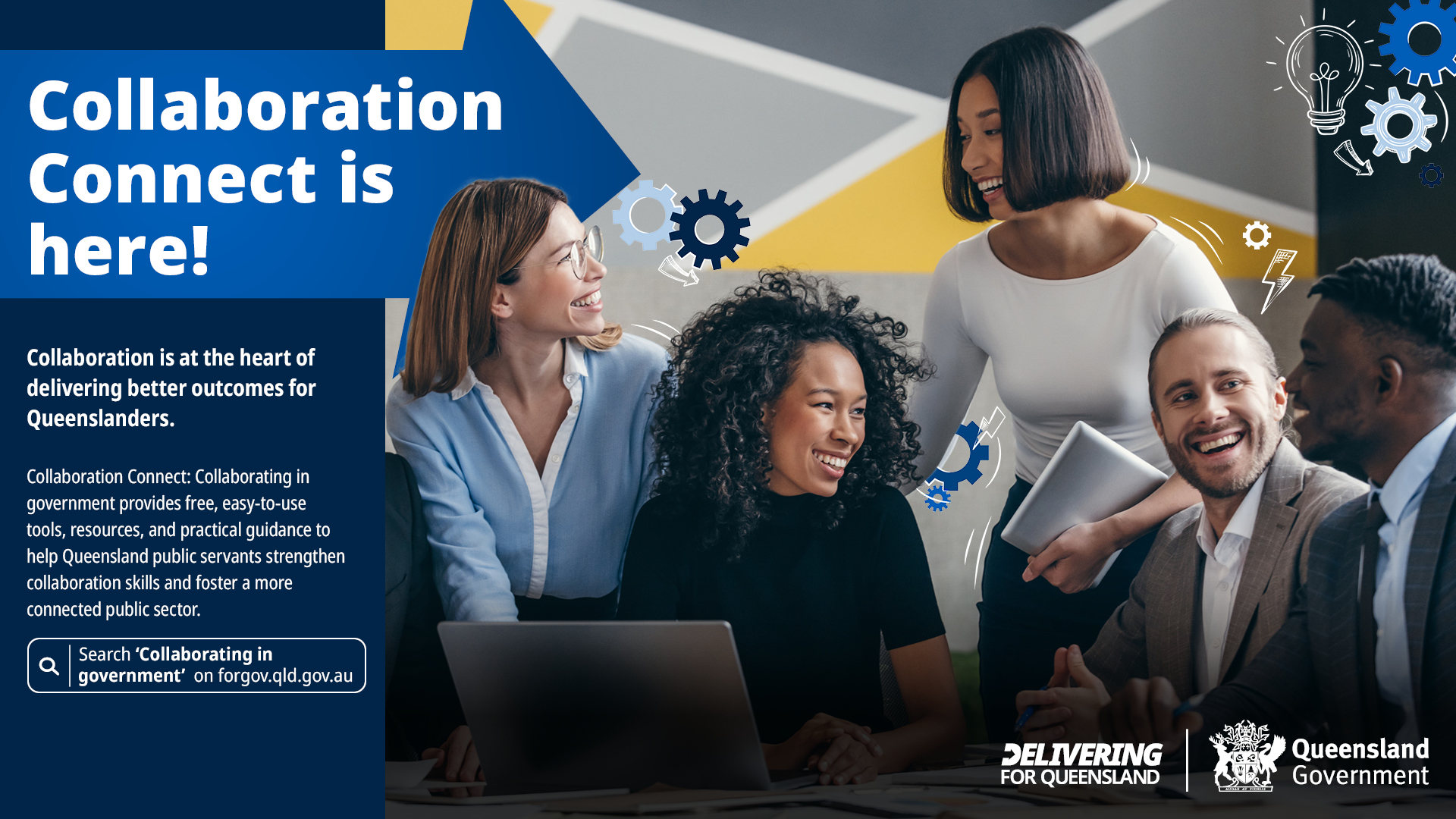 To support better collaboration practices in your agency, a promotion toolkit is available to share and embed Collaboration Connect: Collaborating in government. These resources are ideal for use in internal messaging, newsletters, or agency platforms.
